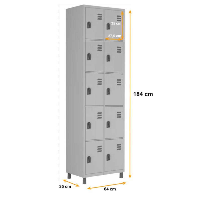 Roupeiro de Aço 10 Portas PEQUENAS – 1,84×0,64×0,35 – W3 – 17012