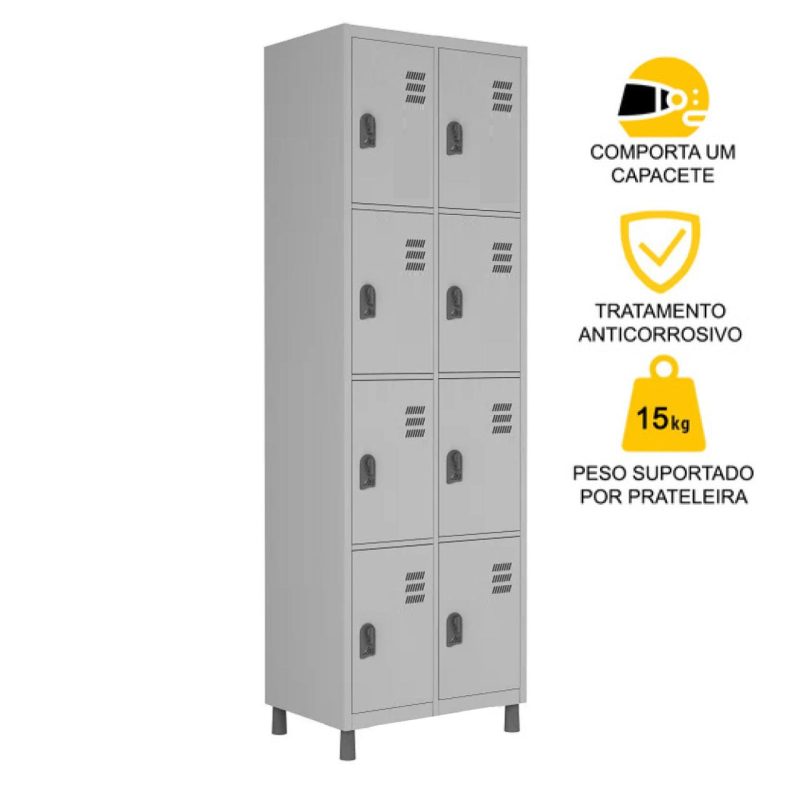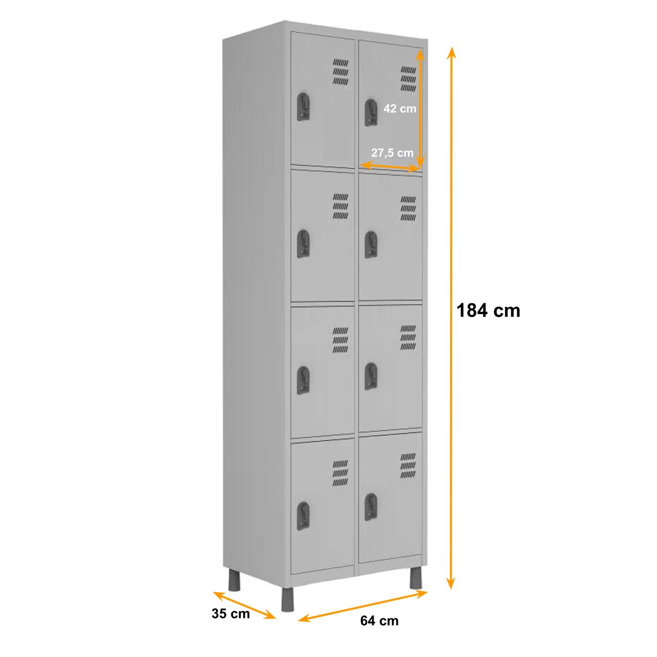 Roupeiro de Aço c/ 08 Portas PEQUENAS – 1,84×0,64×0,35m – CZ/CZ – W3 – 10017
