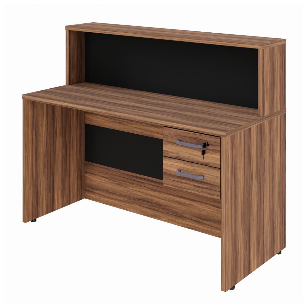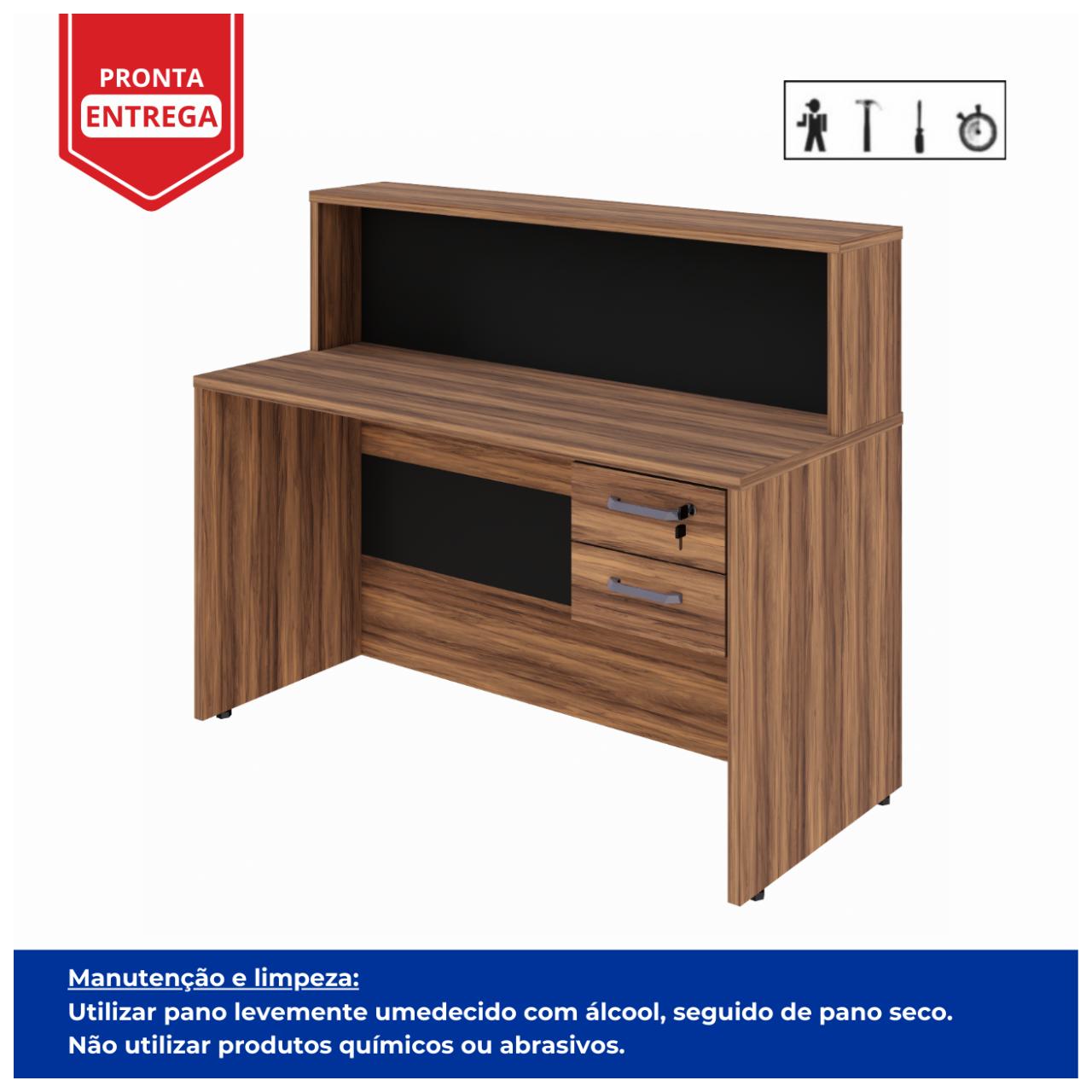Balcão de Atendimento 1.35×1,13×0,60m – C/ 02 Gavetas NOGAL SEVILHA / PRETO – 63082