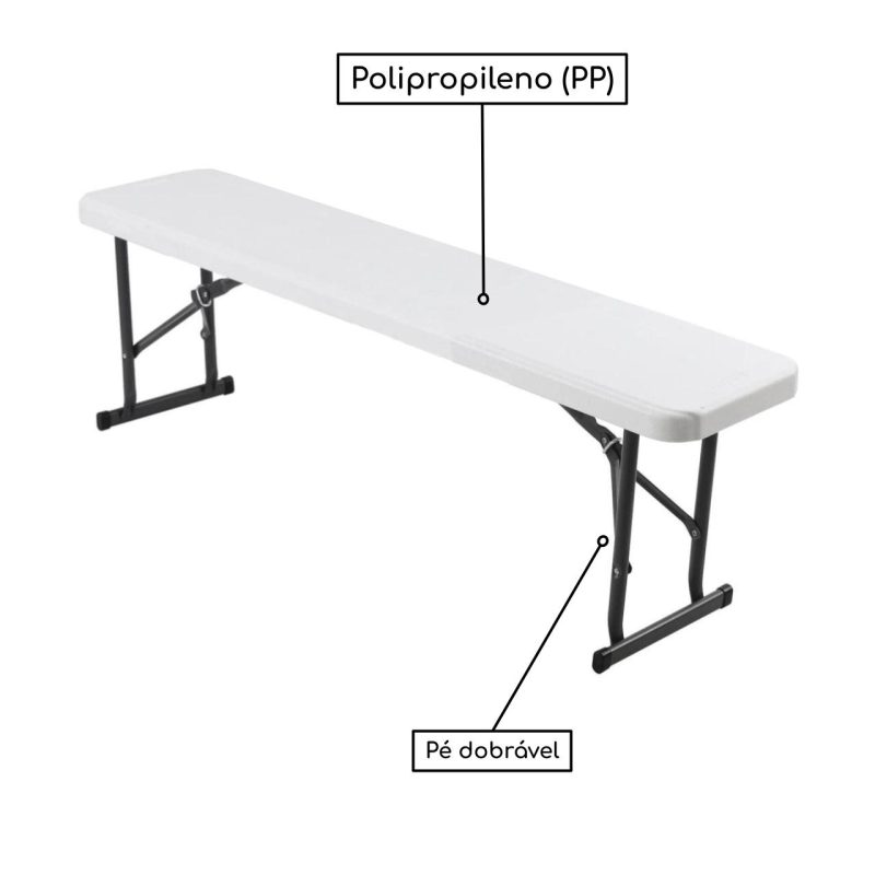 Banco Refeitório MASTER FIT C/ Pés Dobráveis 1,50×0,26×0,45m – Assento em PP BRANCO – 50072