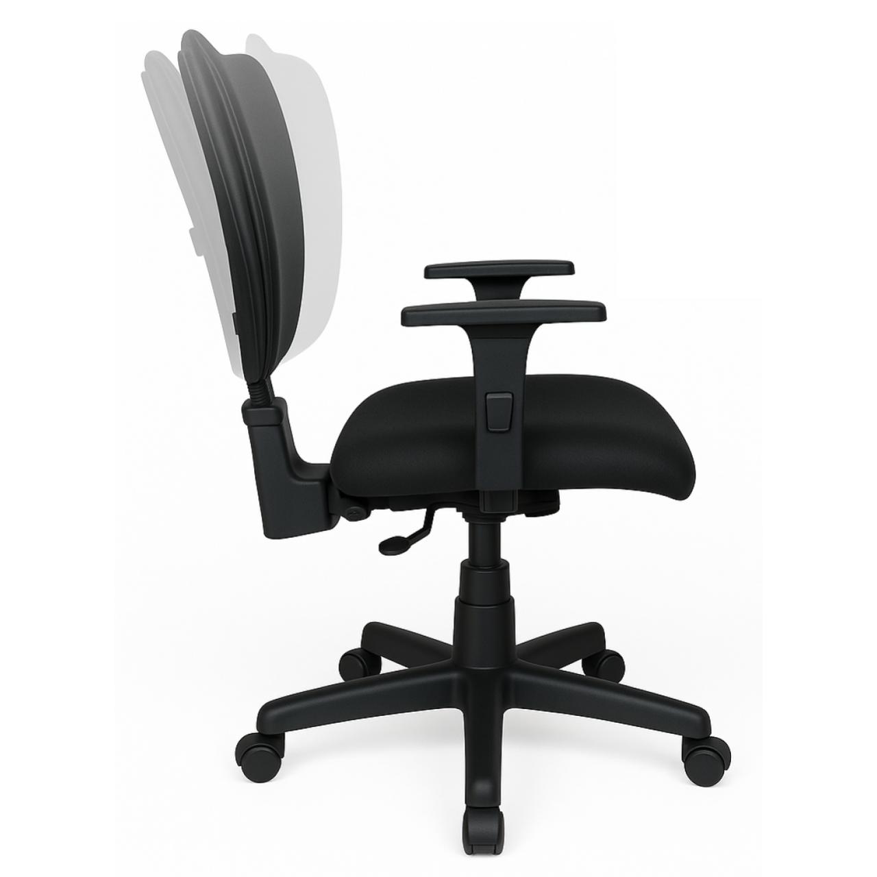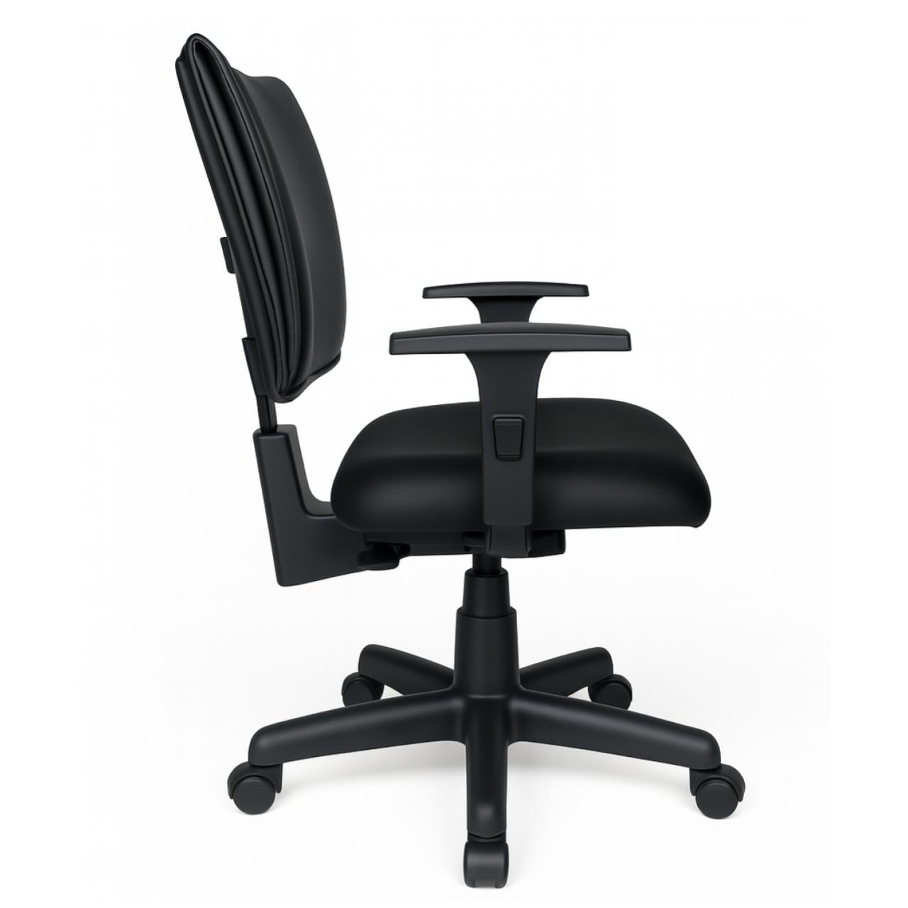Cadeira de escritório ergonômica com encosto e assento estofados, braços reguláveis e mecanismo Back System, projetada para proporcionar conforto prolongado e ajuste personalizado ao usuário.