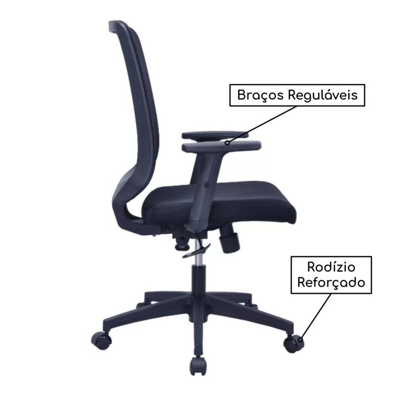 Cadeira de Escritório Diretor TELA TURIM – COR PRETO – Pollo Móveis – 34005