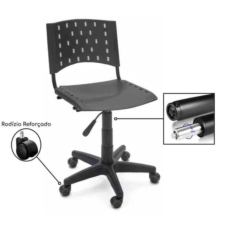 Cadeira de Escritório Giratória PLÁSTICA – PMD – COR PRETO – 31300