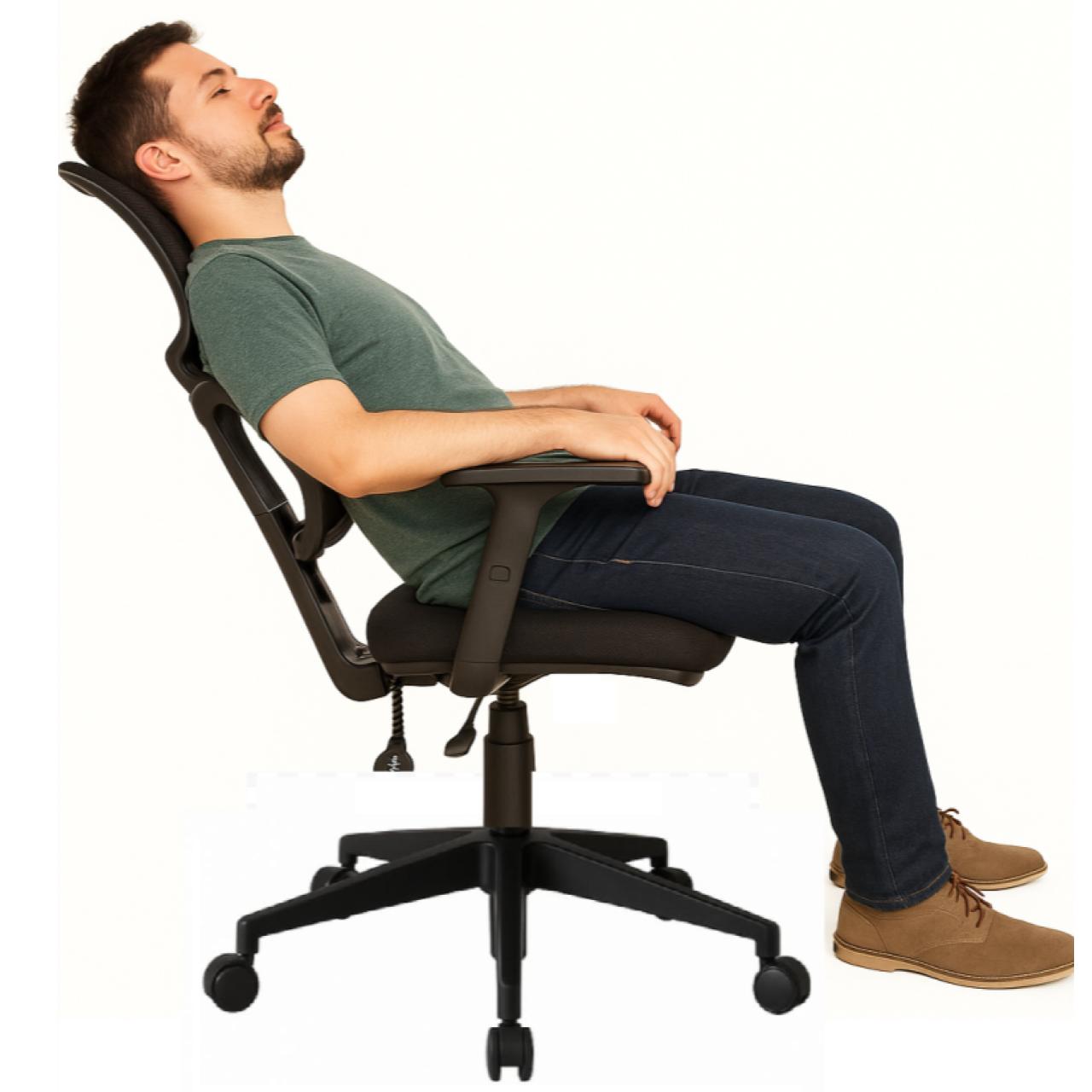 Cadeira ergonômica de uso profissional, ideal para ambientes corporativos, operacionais e escritórios em geral. Equipada com encosto em tela mesh, mecanismo Back System com ajuste de inclinação e altura, e dimensões adequadas para atender à Norma Regulamentadora NR 17 do Ministério do Trabalho.