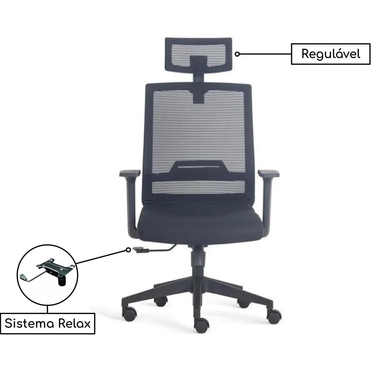Cadeira Escritório Presidente Tela Berlim – PMD – Cor Preto – 30050