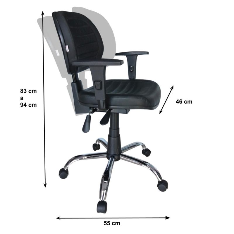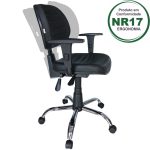 Cadeira Executiva Back System COSTURADA – ARANHA CROMADA – Braços Reguláveis – Cor Preta 31011