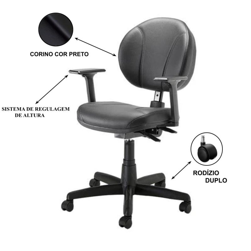 Cadeira Executiva BACK SYSTEM OPERATIVA c/ Braços Reguláveis – CORINO PRETO 32987