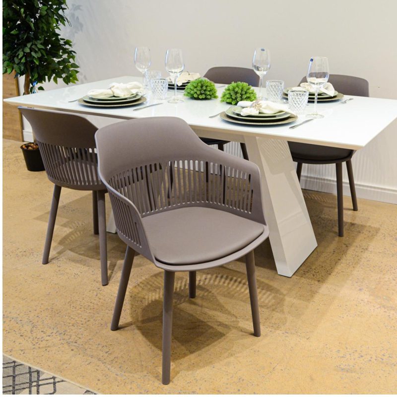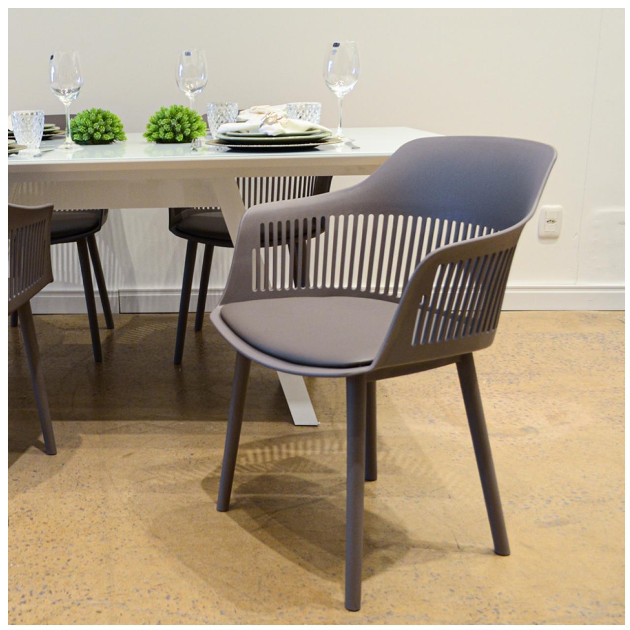 Estrutura: Monobloco injetado em polipropileno de alta resistência, garantindo durabilidade, leveza e fácil limpeza. A cor cinza confere um visual neutro e sofisticado.