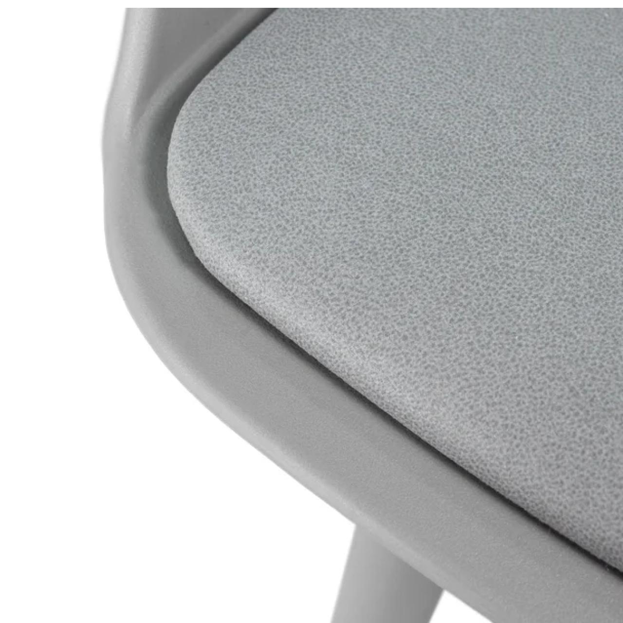 Cor: Cinza claro, em tonalidade coordenada com a estrutura da cadeira, complementando o design.