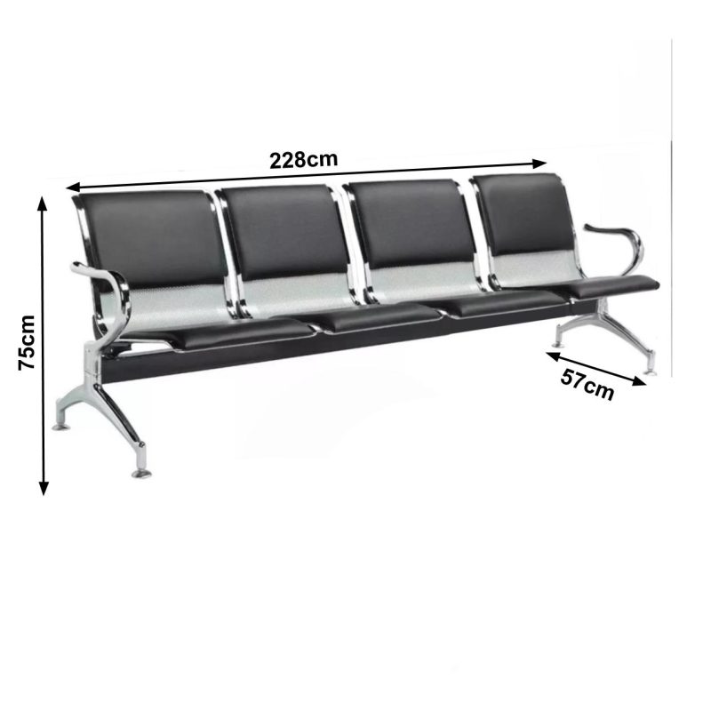 Longarina AEROPORTO ESTOFADA com 04 Lugares – Cor Cromada 33112