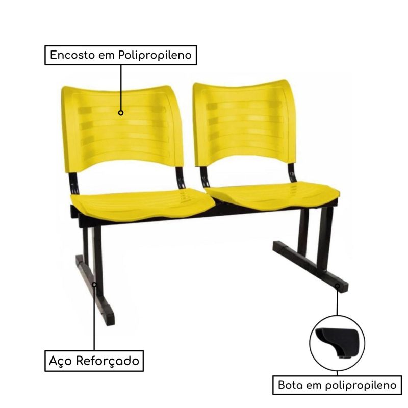 Cadeira Longarina Plástica 02 Lugares – Cor Amarelo – PMD – 34209