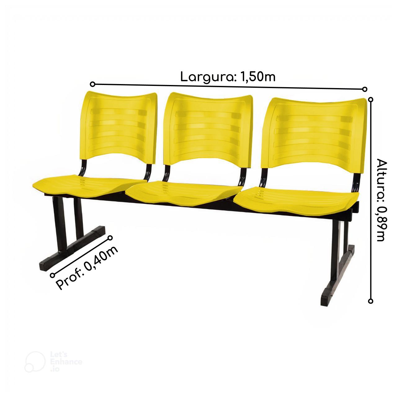 Cadeira Longarina Plastica 03 Lugares – Cor Amarelo – PMD – 34204