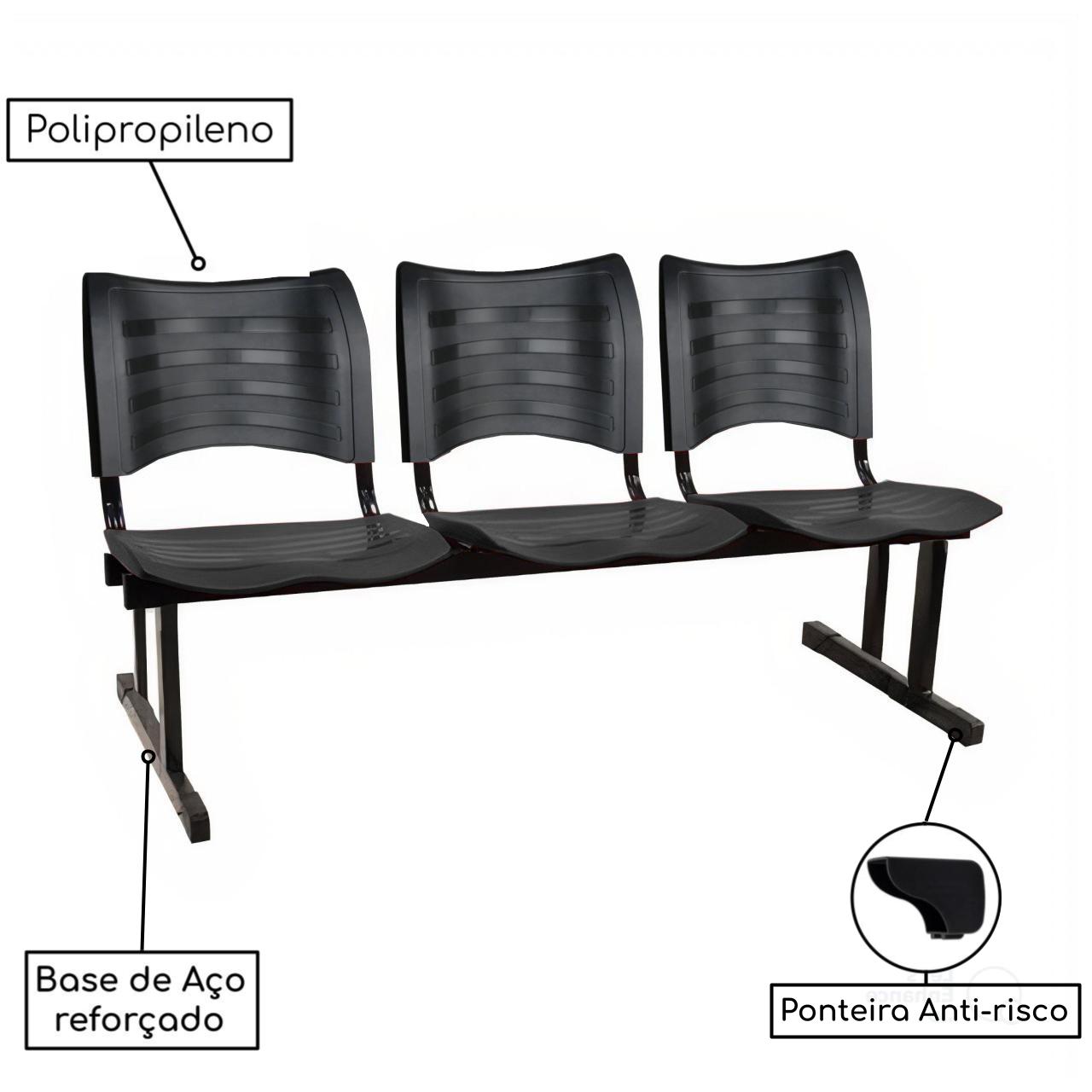 Cadeira Longarina Plástica 03 Lugares – Cor Preto – PMD – 34200