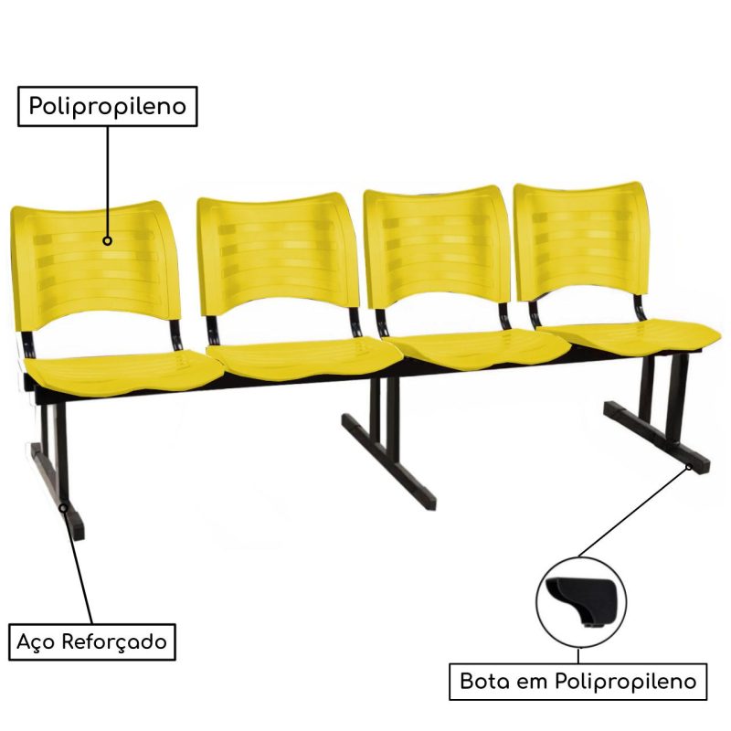 Cadeira Longarina Plática 04 Lugares – Cor Amarelo – PMD – 34195