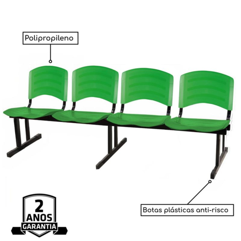 Cadeira Longarina PLASTICA 4 Lugares Cor Verde 33099