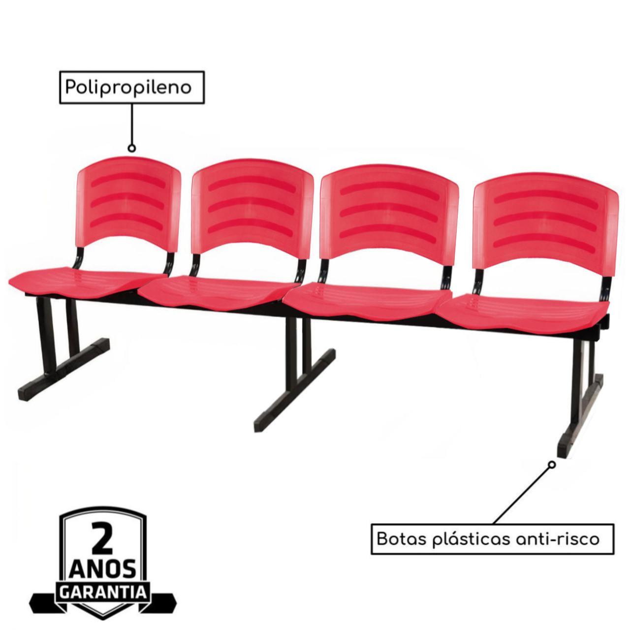 Cadeira Longarina PLASTICA 4 Lugares Cor Vermelho 33096