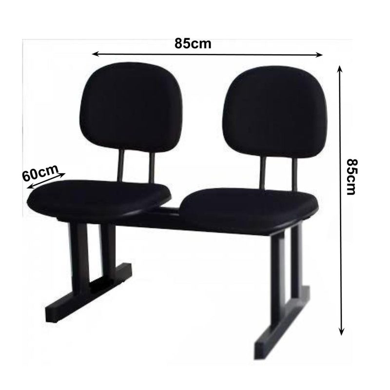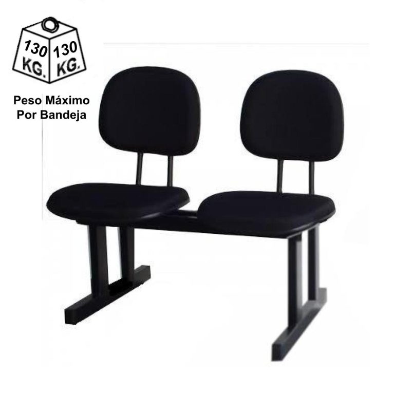 Longarina para Recepção SECRETÁRIA 02 Lugares – Cor PRETA – Pollo Móveis – 33074