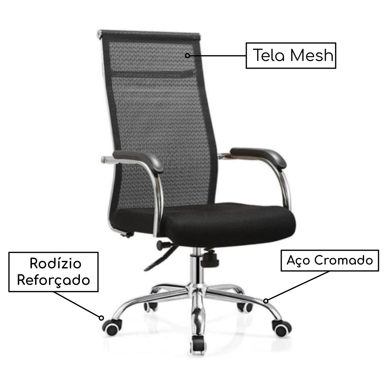 Cadeira Giratória Tela Mesh CROMADA DUBAI – PMD – Cor Preto – 31019
