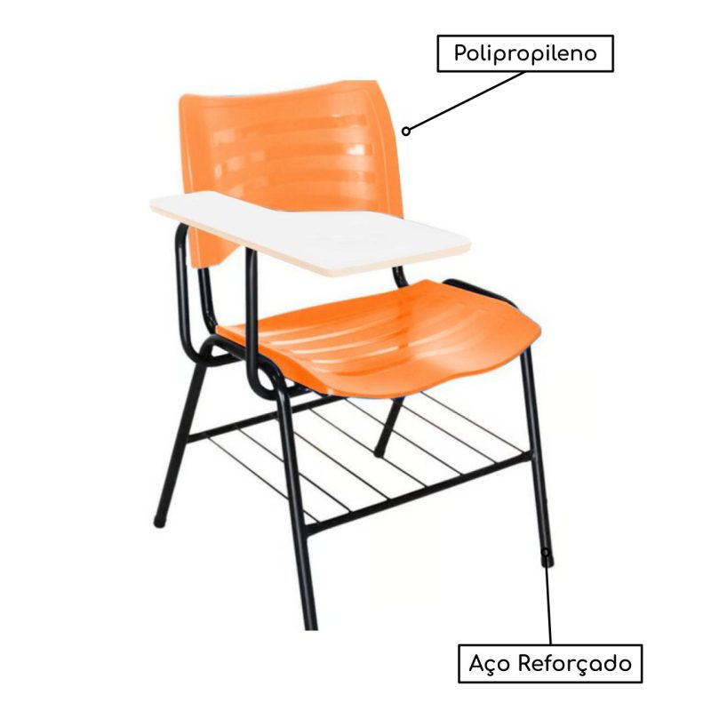 Cadeira Universitária Plástica Prancheta MDF – COR LARANJA – 34009