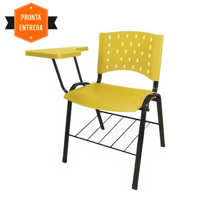 Cadeira Universitária PRANCHETA PLÁSTICA com Porta Livros – Cor Amarelo 32021