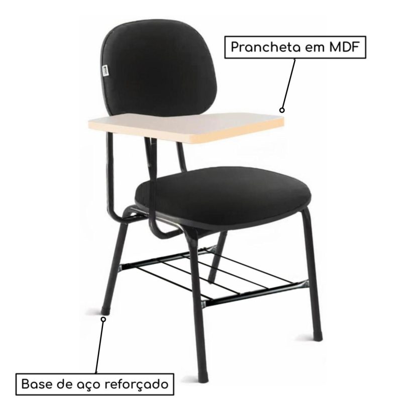 Carteira Universitária Secretária Estofada c/ Grade – Corino Preto – PMD – 32045