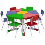 Conjunto HEXAGONAL Mesas e Cadeiras – 06 A 09 anos – JUVENIL – PMD – 42012