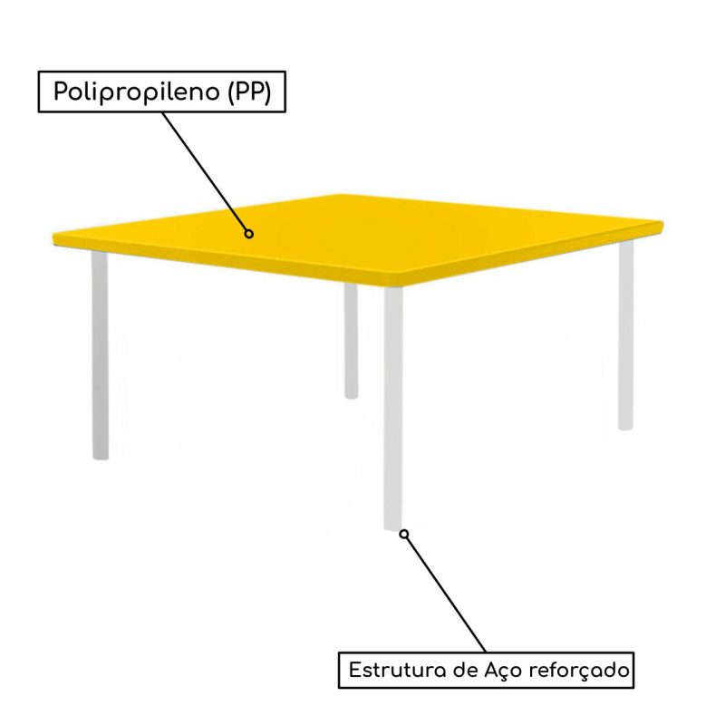 Conjunto Quadrado c/ 04 Cadeiras COR AMARELO – TAMPO PLÁSTICO – 06 a 09 Anos – JUVENIL – 44005
