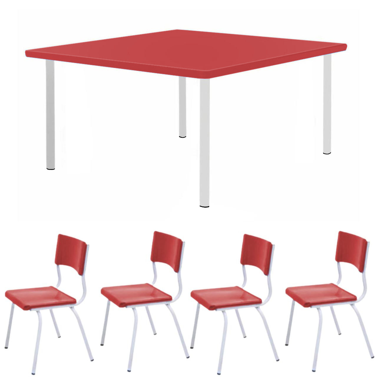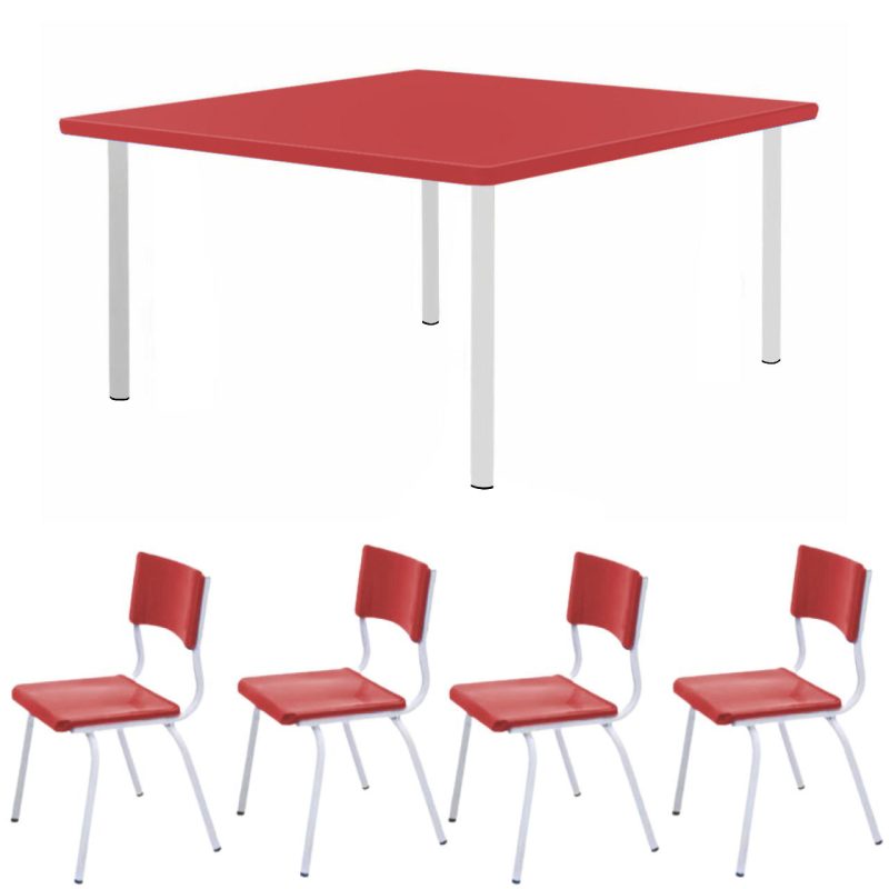 Conjunto Quadrado c/ 04 Cadeiras COR VERMELHO – TAMPO PLÁSTICO – 02 a 06 Anos – INFANTIL – 44001