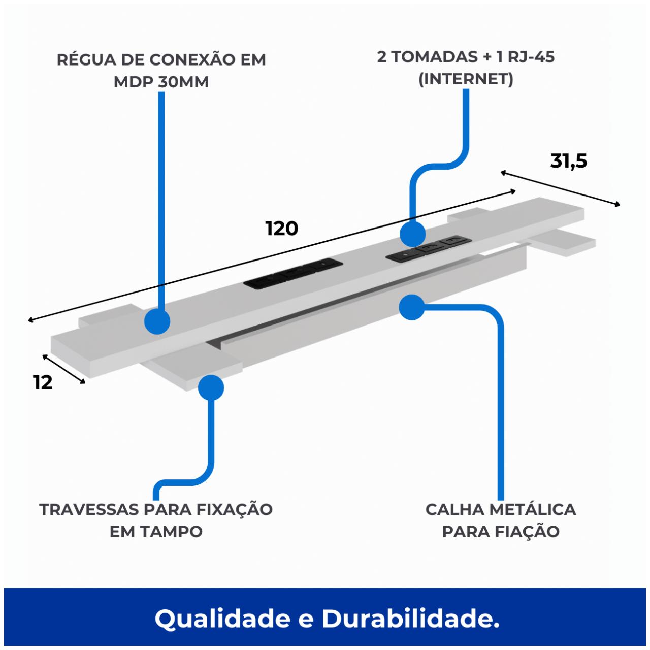 Travessas: Estrutura reforçada com travessas metálicas ocultas sob o tampo