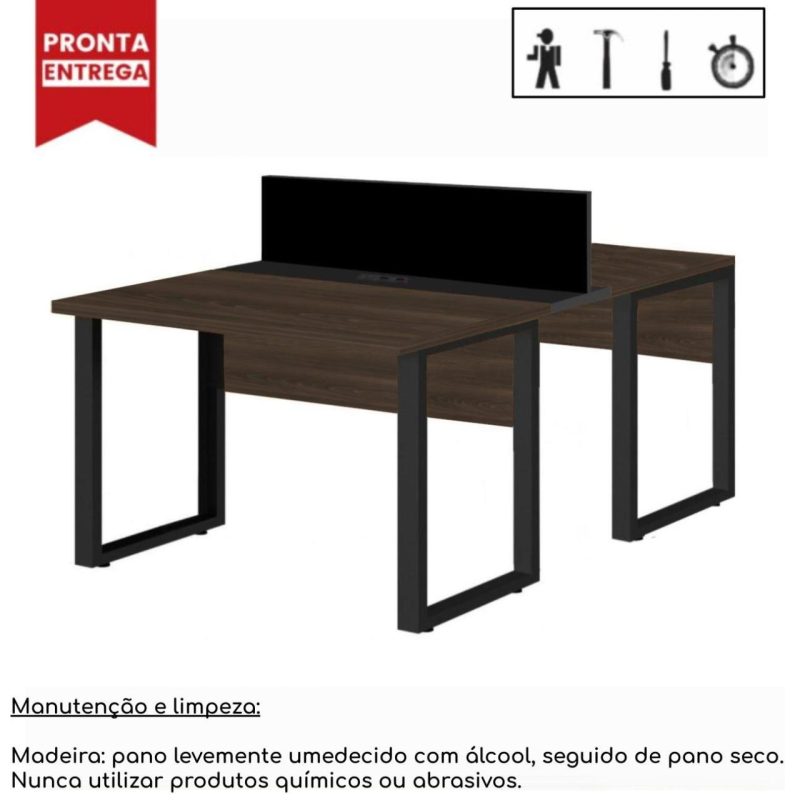 Estação de Trabalho Dupla 1,20×1,35m 02 Lugares S/ Gavetas c/ ponto de tomada PÉ QUADRO MARSALA/PRETO – 64000