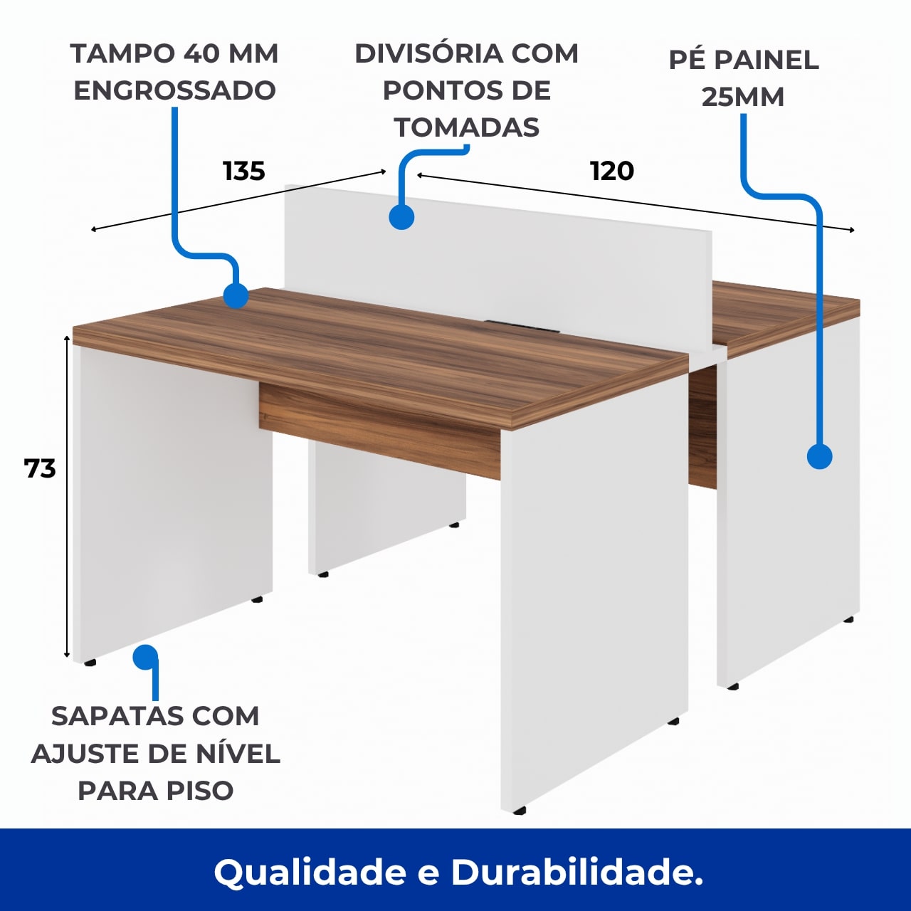 Estação de Trabalho Dupla 1,20×1,35m c/ Tomada – Pé Painel