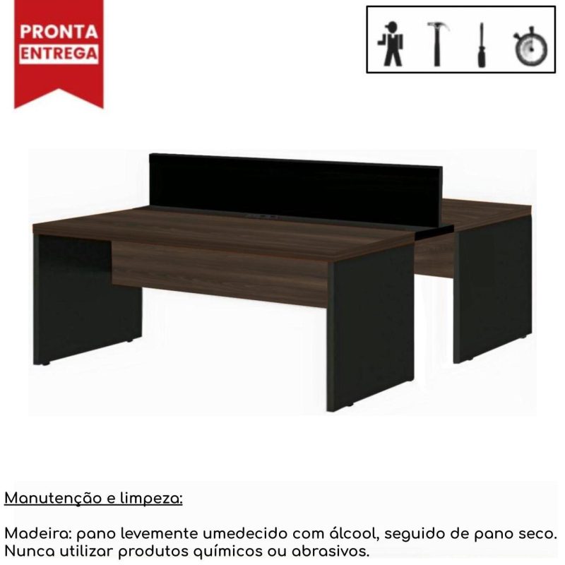 Estação de Trabalho Dupla 1,50×1,35m 02 Lugares c/ Gavetas c/ ponto de tomada MARSALA/PRETO – 63092
