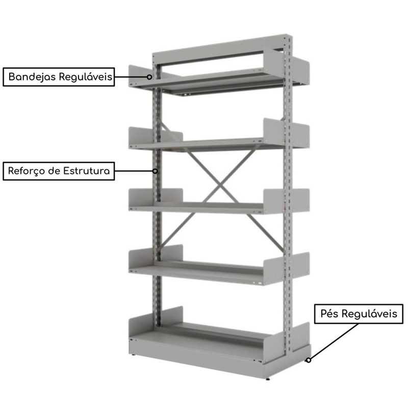 - Estante Biblioteca de Centro Aço com 10 Bandejas