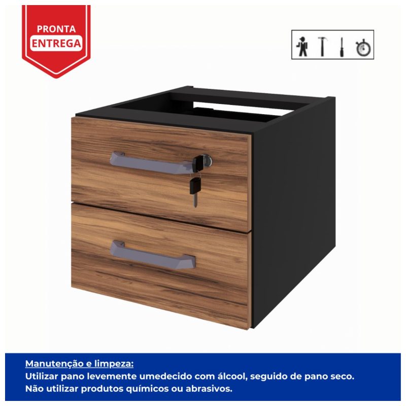 Gaveteiro Suspenso p/ Mesa (02 Gav) NOGAL SEVILHA / PRETO – 21420