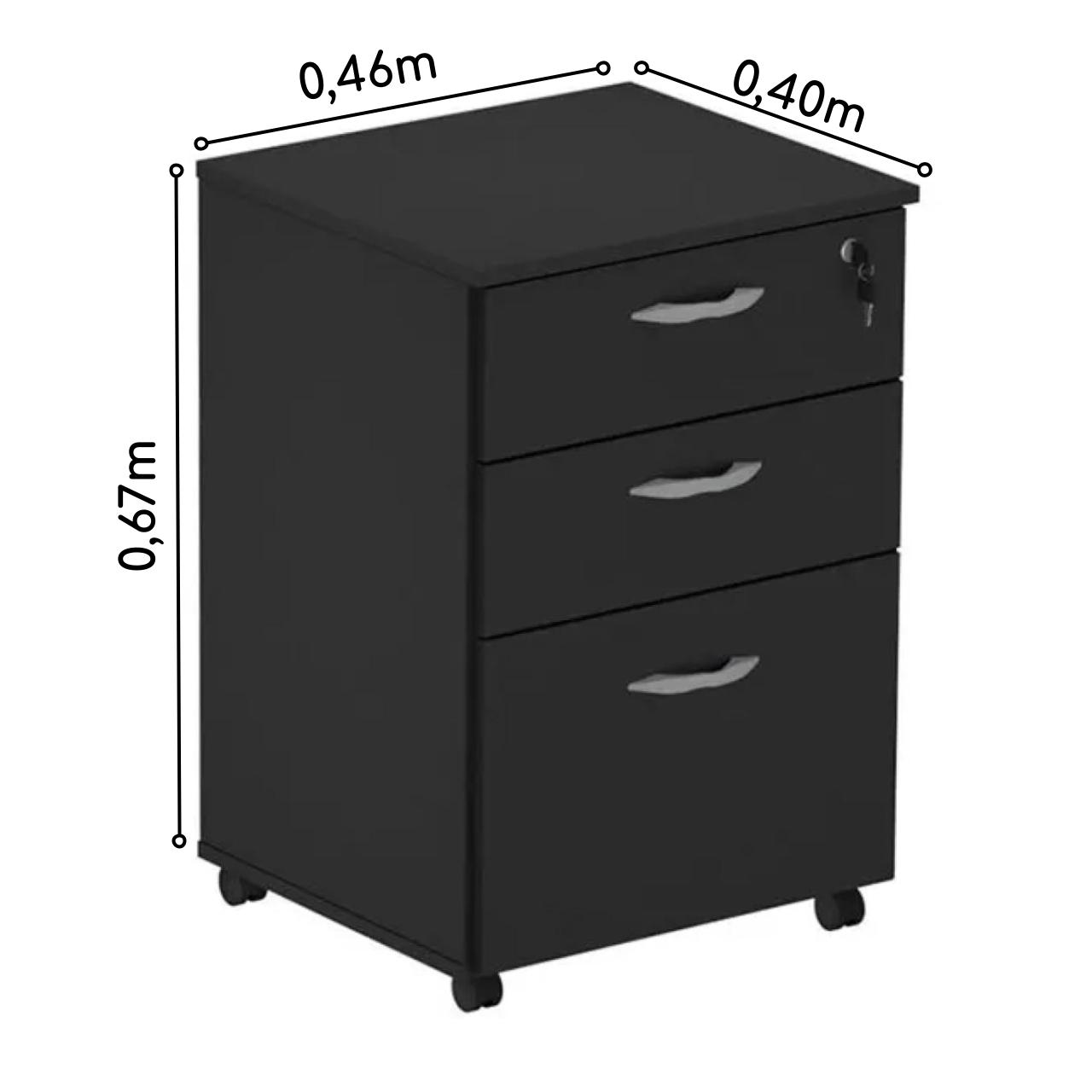 Gaveteiro Volante 03 Gav. 0,67×0,46×0,40m – Cor Preto – PMD – 44107