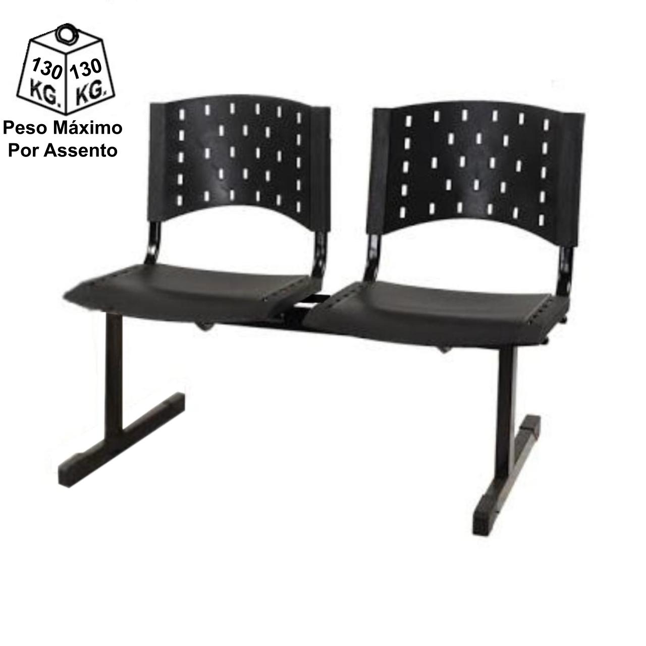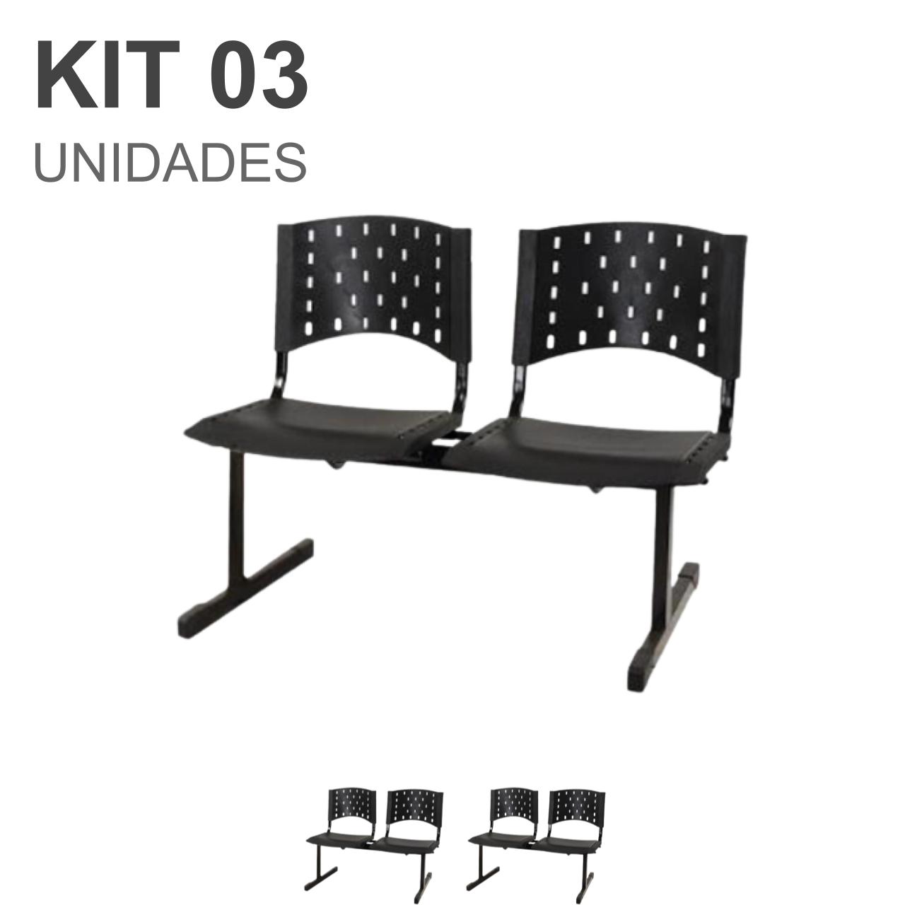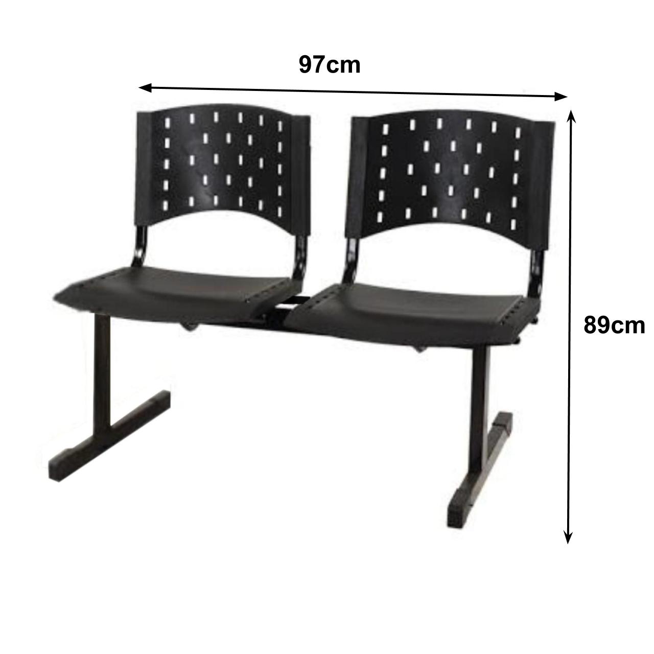 Kit 03 Cadeiras Longarinas PLÁSTICAS 02 Lugares – Cor PRETA – REALPLAST – 23019