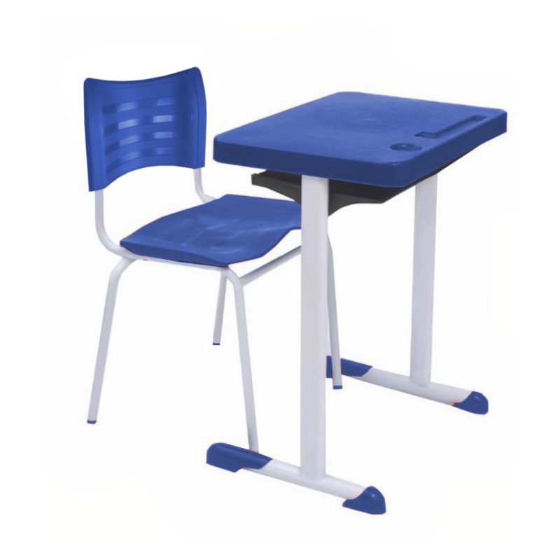 Kit Escolar Individual AZUL – (Mesa e Cadeira) – ADULTO – TAMPO PLÁSTICO – COR AZUL – MRPLAST- 54000