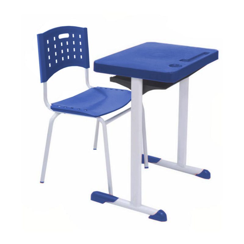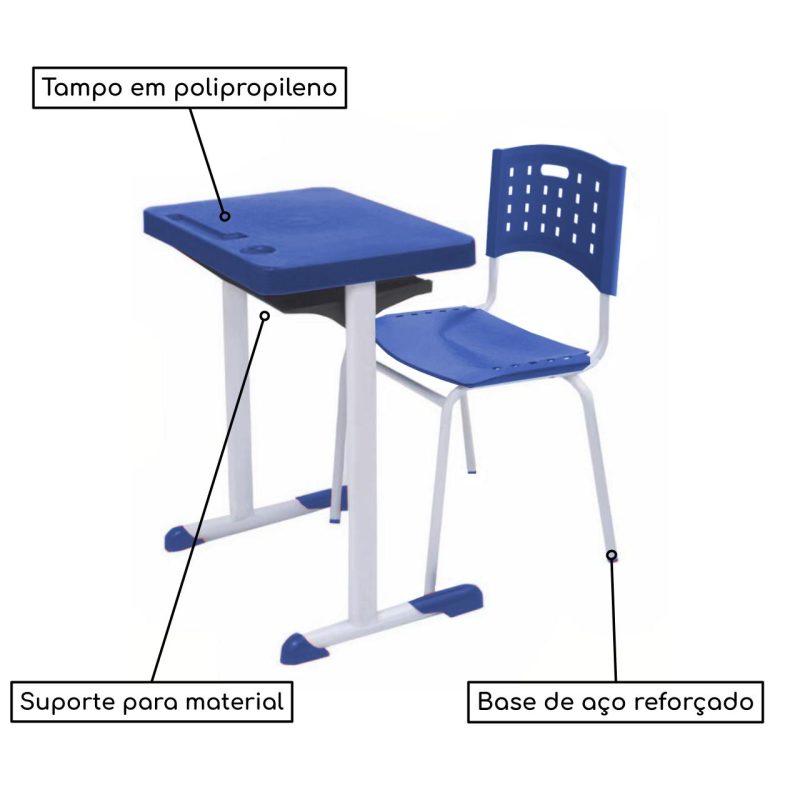 Kit Escolar Individual AZUL – (Mesa e Cadeira) – ADULTO – TAMPO PLÁSTICO – COR AZUL – REALPLAST – 54004