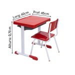 Kit Escolar Individual – (Mesa e Cadeira) – JUVENIL 06 a 09 Anos COR VERMELHO – 41082