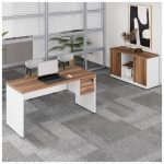 Kit Mesa Escritório 1,70×0,60m c/ Gavetas + Armário Baixo Credenza – WORKSTART – NOGAL SEVILHA/BRANCO – 34335