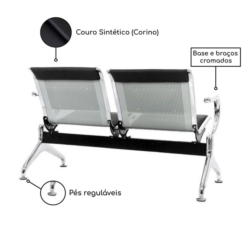Conteúdo da Embalagem: Assento e Encosto Cromado / Longarina 02 Lugares