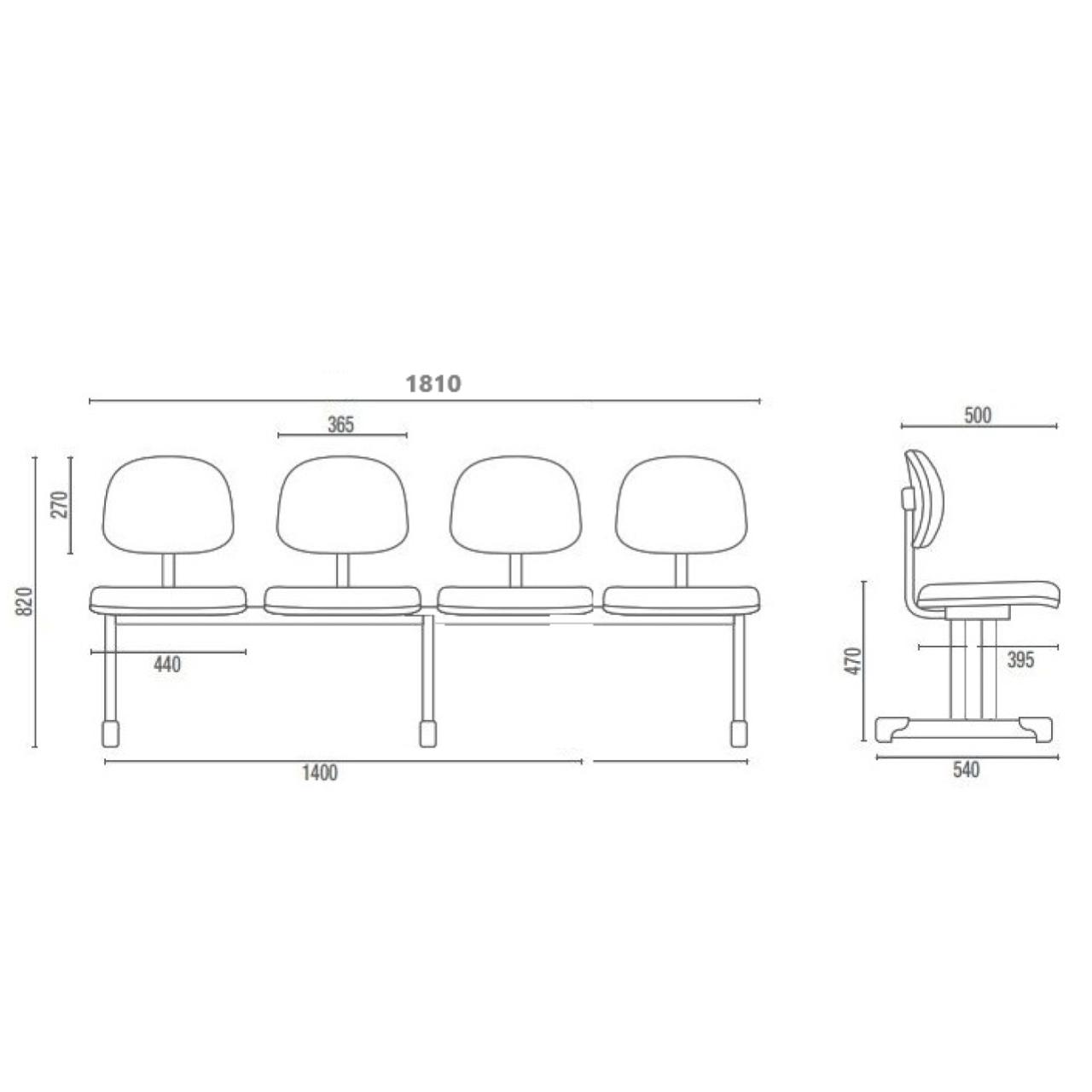 Longarina para Recepção SECRETÁRIA 04 Lugares – Corino PRETO – Pollo Móveis – 34120