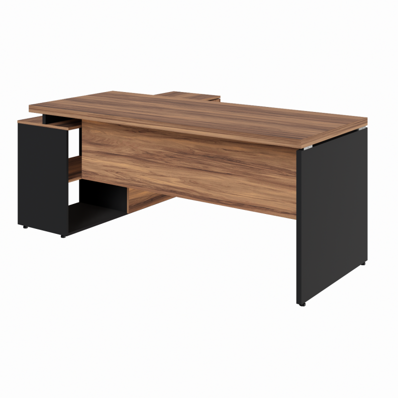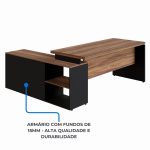 Mesa Diretorzinha c/ Aparador – Pé de MADEIRA – 1,90×1,50mNOGAL SEVILHA / PRETO – 21426 .