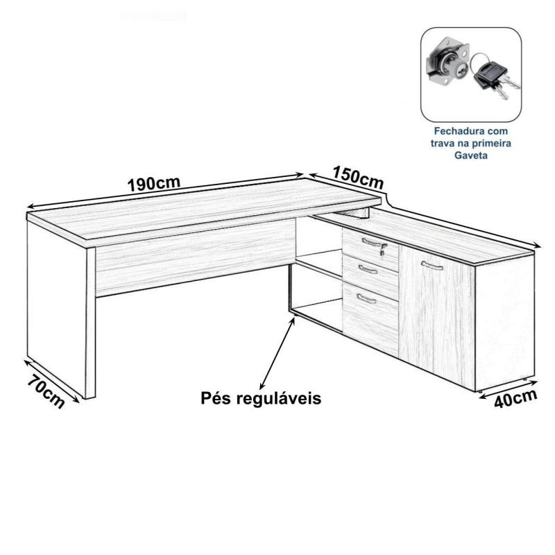 Conteúdo da Embalagem: Mesa Diretorzinha1,90×1,50cm / Gaveteiro Pedestal