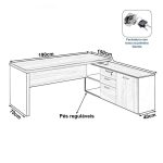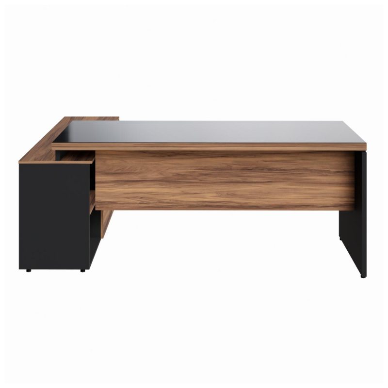 Mesa Diretorzinha c/ vidro c/ Aparador – Pé de MADEIRA – 1,90×1,50m – PMD – NOGAL SEVILHA / PRETO – 21428