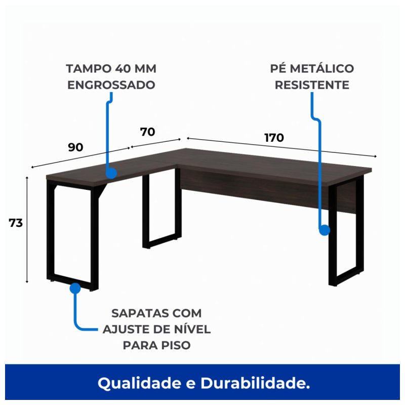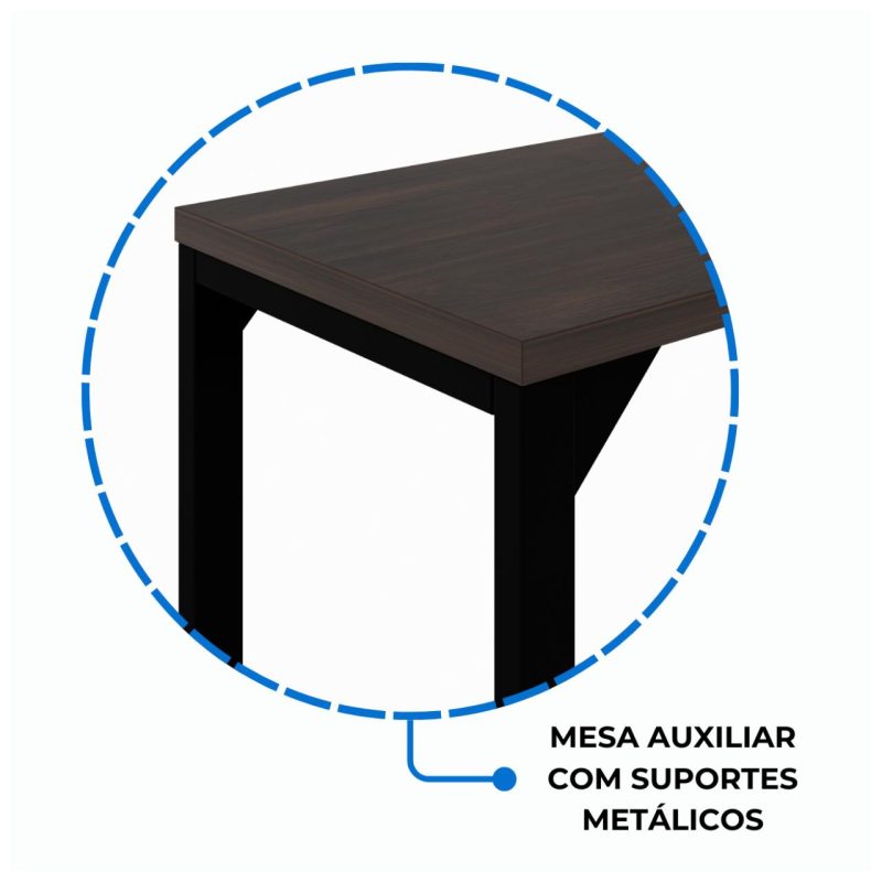 Mesa em L com PÉ QUADRO (1,70×0,70m + Mesa Auxiliar) – S/ Gavetas MARSALA/PRETO – 25478