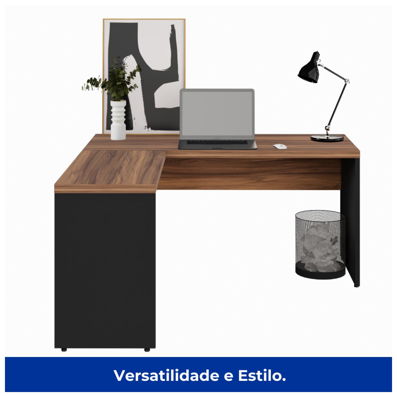 Mesa de Escritório em L (Mesa 1,50m + Mesa Auxiliar) – Sem Gavetas NOGAL SEVILHA/PRETO – 21476