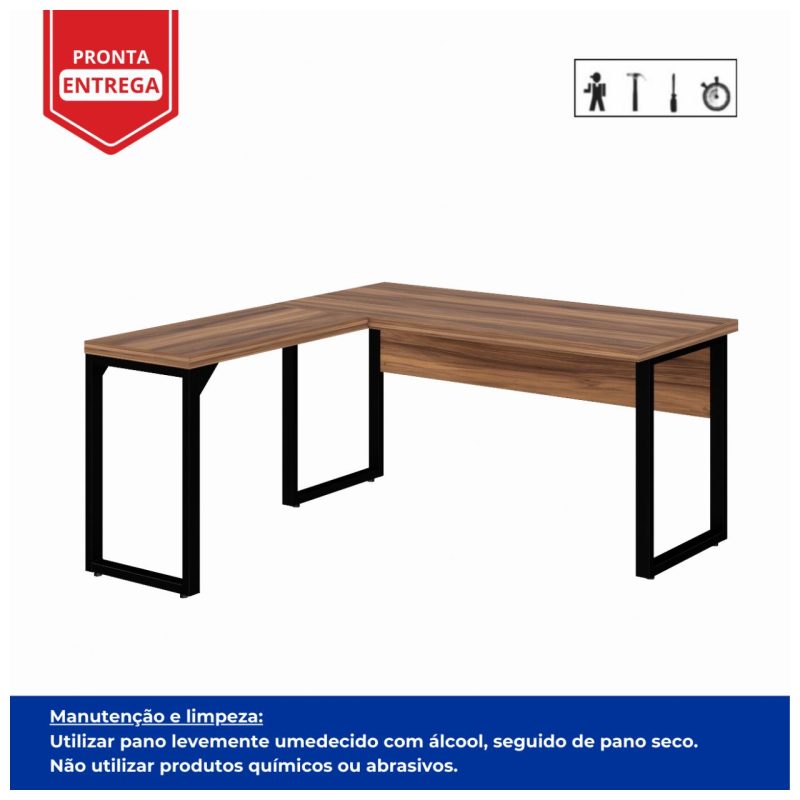 Mesa em L PÉ QUADRO (Mesa 1,50m + Mesa Auxiliar) – S/ Gavetas NOGAL SEVILHA/PRETO – 24476