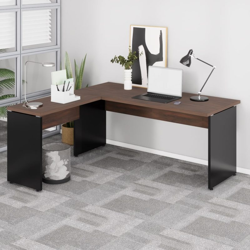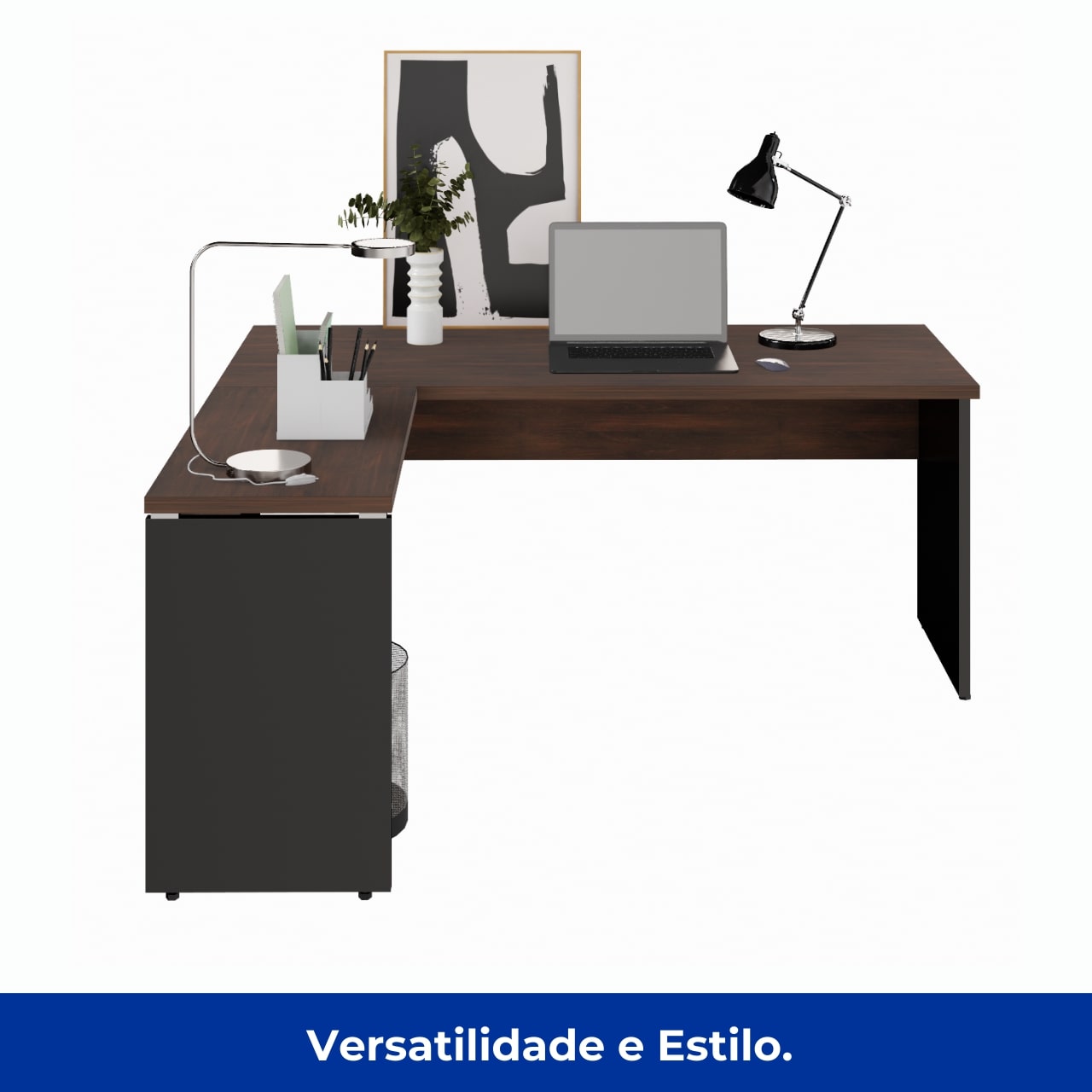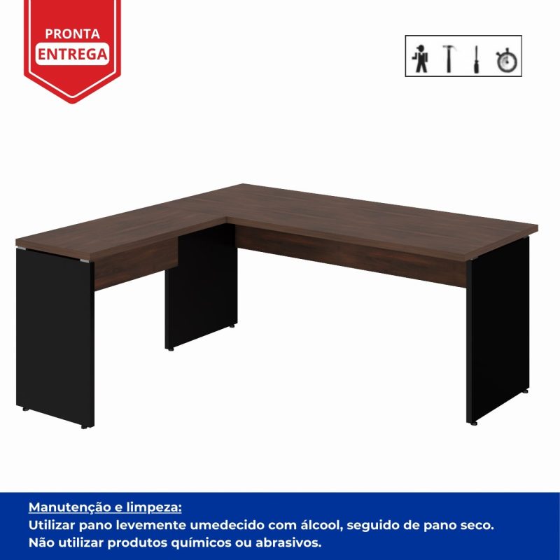 Mesa em “L” (Mesa 1,70m + Mesa Auxiliar) – S/ Gavetas Marsala / Preto – 23478