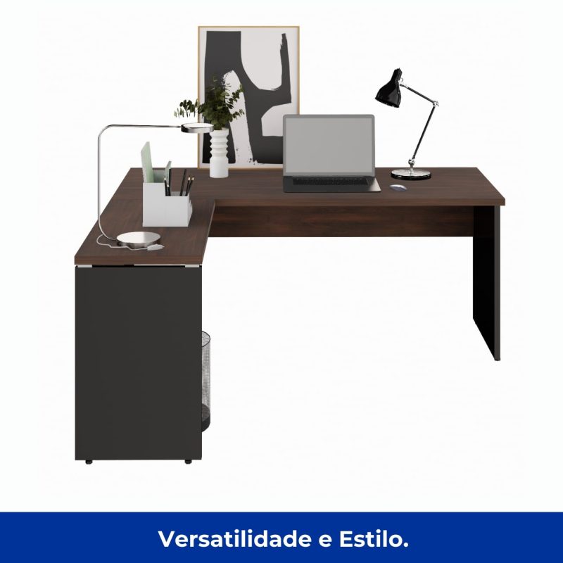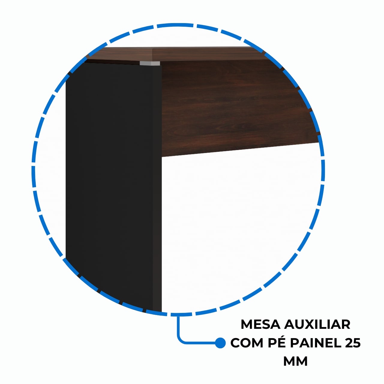Mesa em “L” (Mesa 1,70m + Mesa Auxiliar) – S/ GAVETAS MARSALA / PRETO – 23478